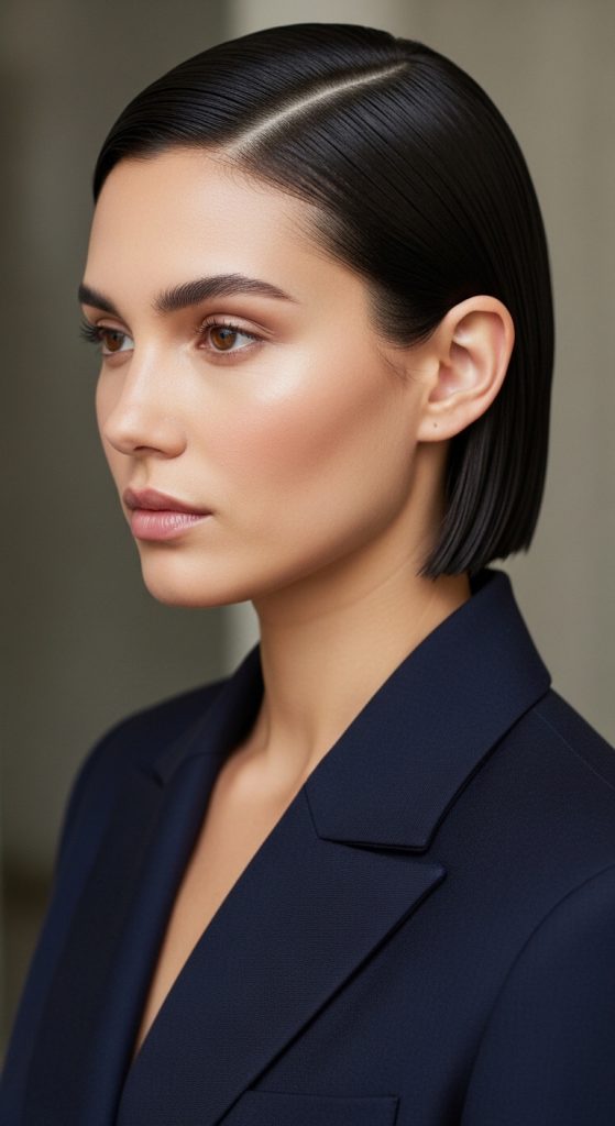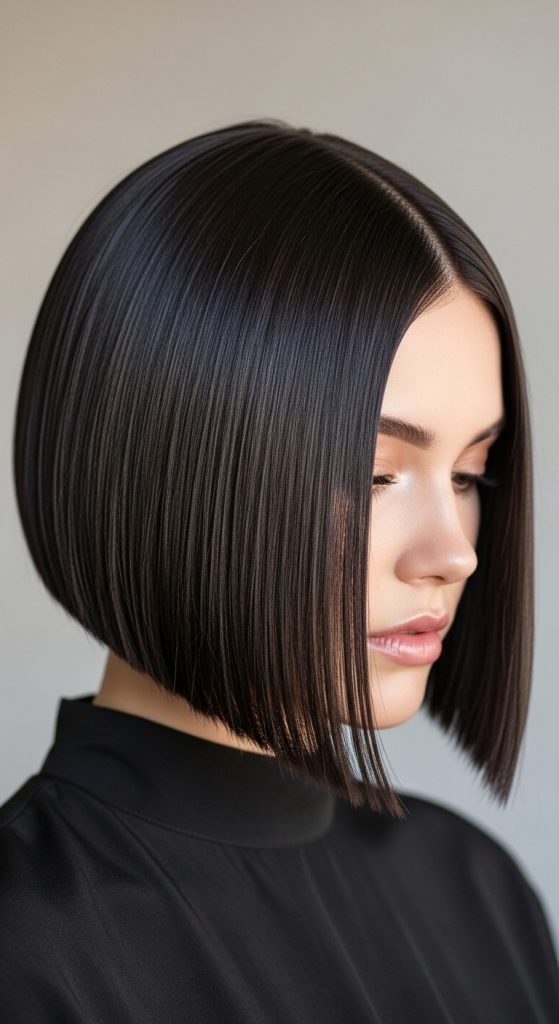 A sleek straight bob focuses on smoothness and precision. It offers a clean and modern appearance that aligns with minimalist design preferences.
