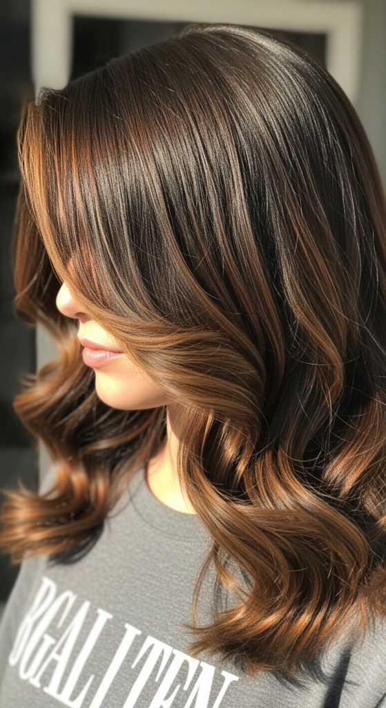Caramel chunky highlights on dark hair combine contrast, depth, and structured color placement to create a visually defined hairstyle. Pinterest ideas in this category focus on using bold highlight sections rather than subtle blending, making the color more noticeable and impactful. Chunky highlights are thicker strands of lighter color placed strategically throughout darker hair to create dimension and movement. This technique enhances texture while maintaining a strong color contrast that remains visible in different lighting conditions. In this tutorial, readers will learn how to plan, apply, and maintain caramel chunky highlights using step by step methods and accessible materials. These creative ideas are useful for improving hair appearance, adding brightness, and achieving a modern design without fully changing the base color. Each idea focuses on practical application, beginner friendly techniques, and consistent results, ensuring that the final look remains structured, balanced, and easy to maintain.