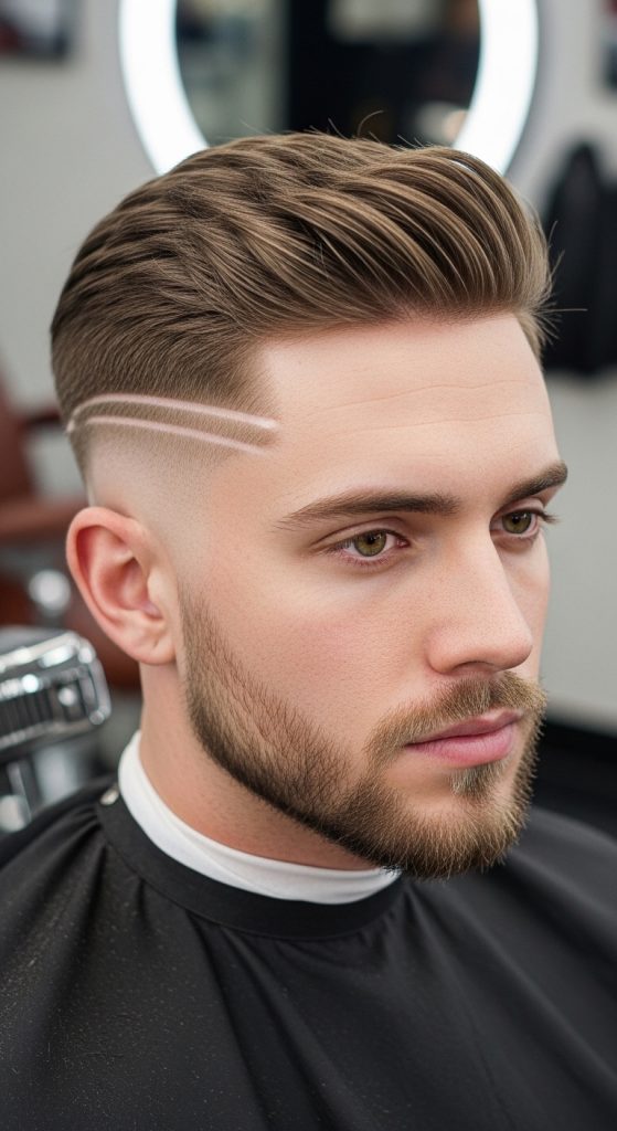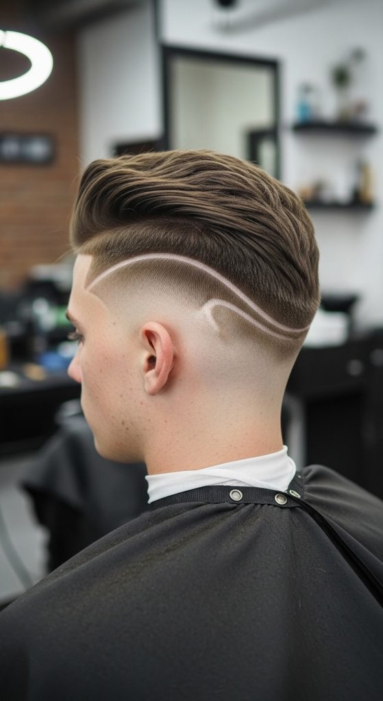 The simple line freestyle design is one of the most popular entry-level haircut designs. This style features one or two clean lines shaved into the faded section of the haircut. The lines can run diagonally, vertically, or slightly curved depending on the desired aesthetic. Because the design is minimal, it highlights the precision of the barber’s technique while maintaining a neat overall appearance.