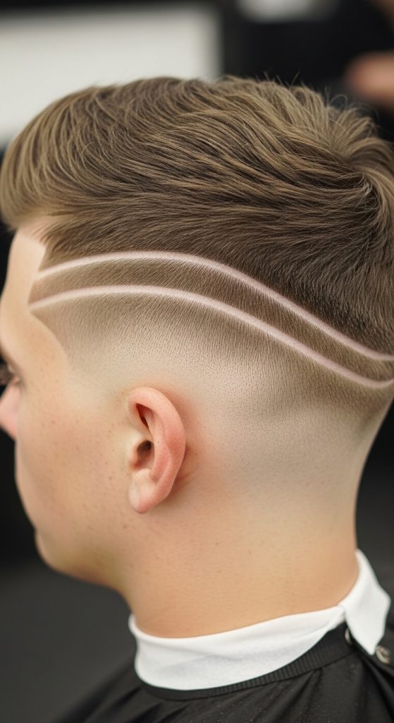 Another advantage of the double line design is its versatility. The lines can run from the temple toward the back of the head or curve around the fade area. These variations allow the design to appear customized while maintaining a balanced appearance.