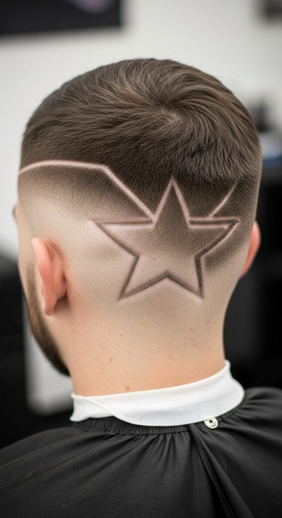 The star design is a more detailed freestyle haircut that features a star-shaped pattern carved into the fade.