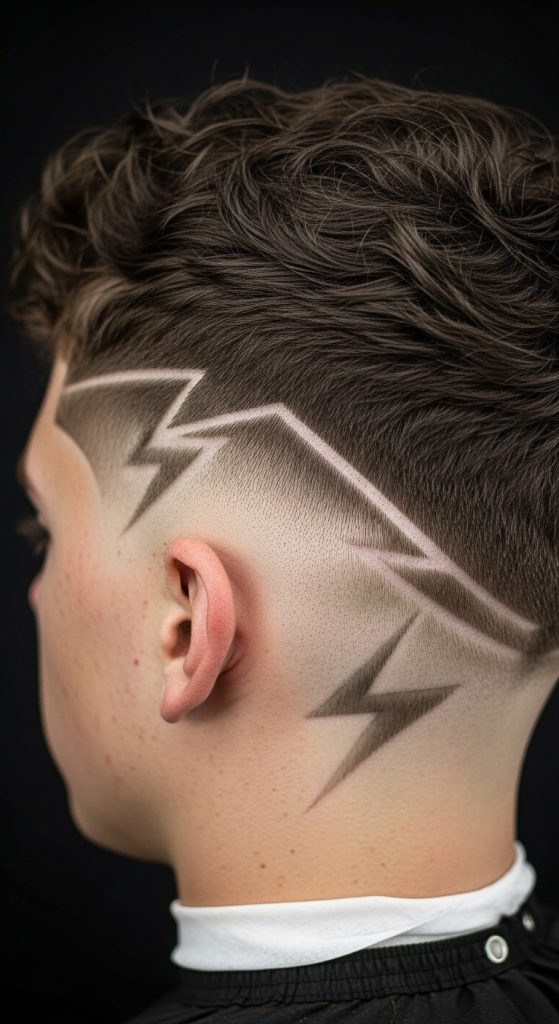Pinterest inspiration frequently features lightning bolt hair designs because they appear energetic and modern. The zigzag pattern draws attention to the side of the head while maintaining a clean and structured haircut. This style works particularly well for individuals who want a more noticeable freestyle design.
