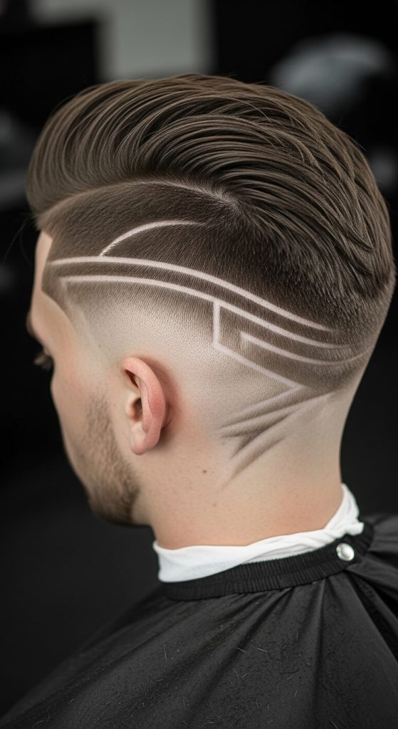 Pinterest hairstyle inspiration often features simple line designs because they provide a subtle way to add creativity to a haircut. The clean lines contrast with the faded background, creating a sharp visual effect. This design works well for individuals who want a stylish detail without introducing complex patterns. It is also suitable for school or professional environments because the design remains understated.