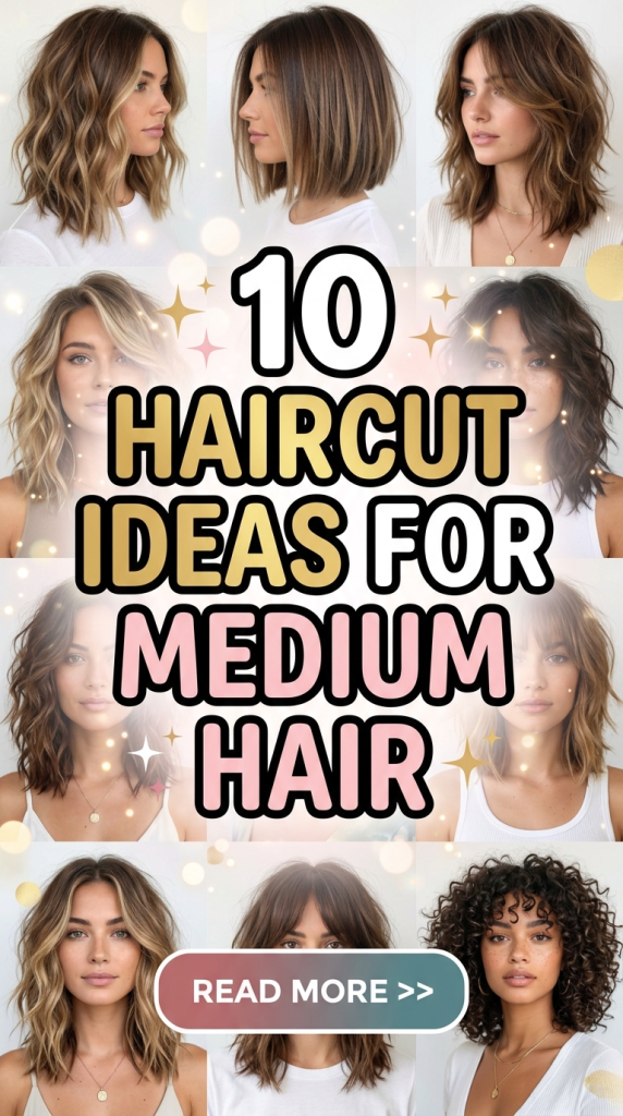 Medium haircuts allow many styling variations such as curls, straight styles, braids, or half-up hairstyles. Pinterest hairstyle inspiration often demonstrates how small styling adjustments can transform the same haircut into multiple everyday looks.