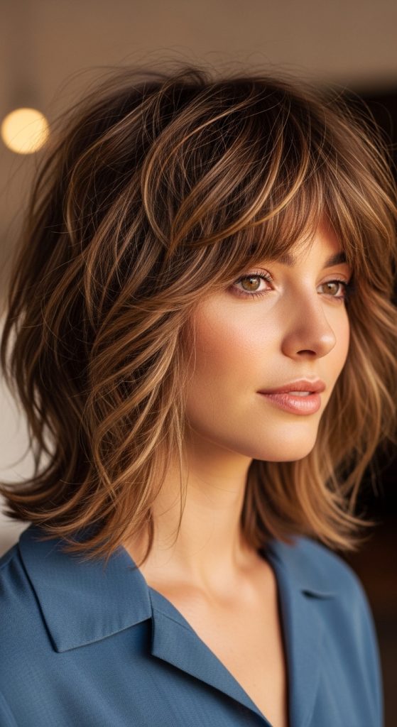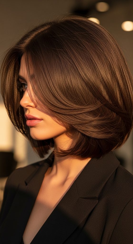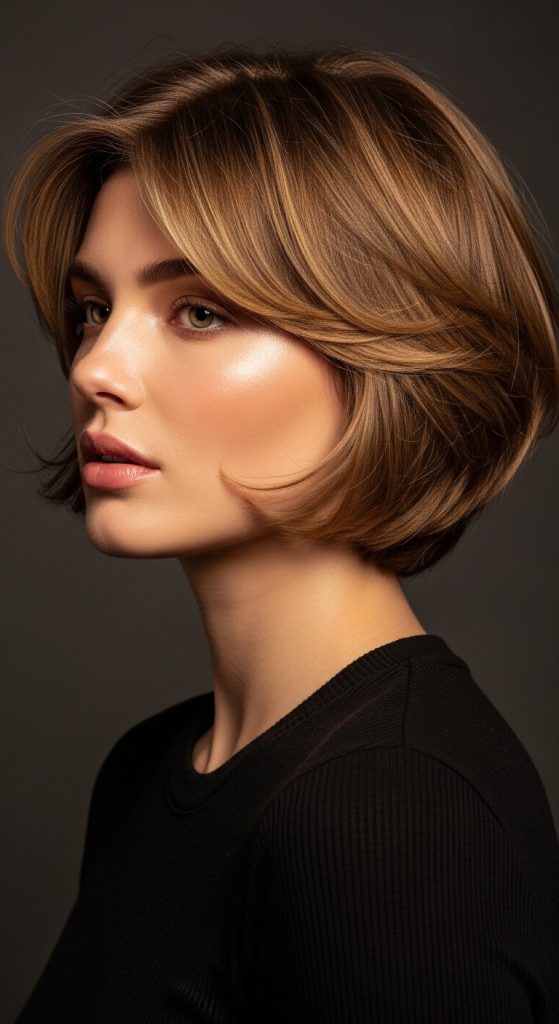 The layered short bob builds on the structure of the classic bob while introducing internal layers that add movement and volume. These layers create a lighter appearance and prevent the haircut from looking too heavy. This design works well for thick hair because layering reduces weight while preserving the overall shape of the bob.