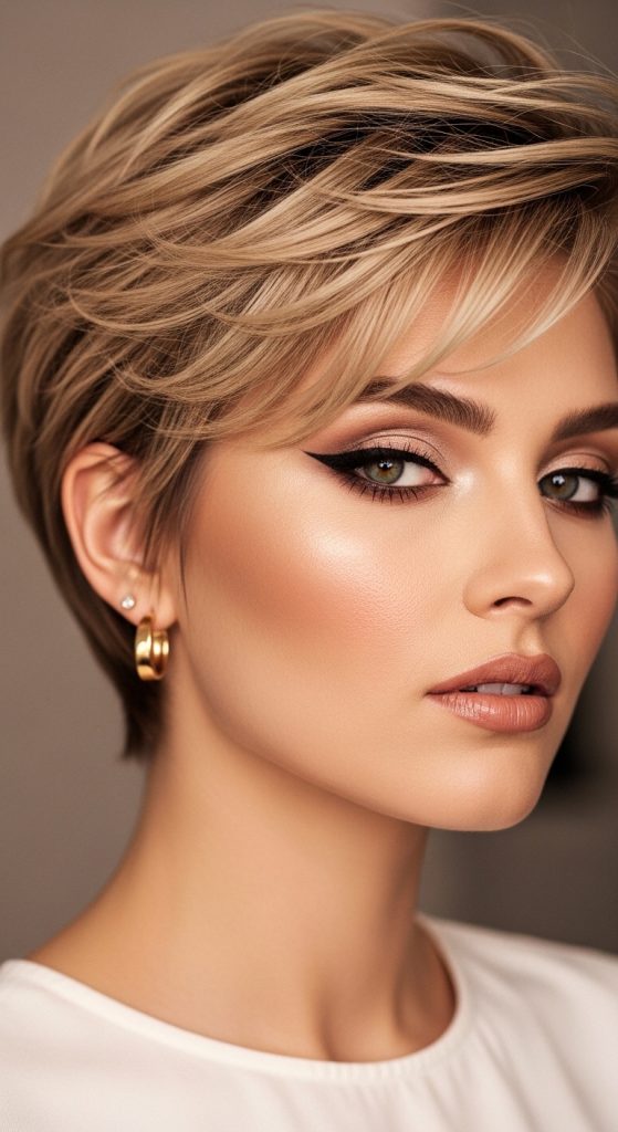 The textured pixie cut is a short hairstyle that emphasizes layers and movement. Unlike a smooth pixie, this version includes multiple short layers that create volume and definition. The haircut sits close to the head while maintaining soft texture on the top. This design allows flexibility for styling because the layers can be shaped in different directions. Pinterest boards frequently highlight textured pixie cuts because they provide a bold yet manageable hairstyle with strong visual structure.