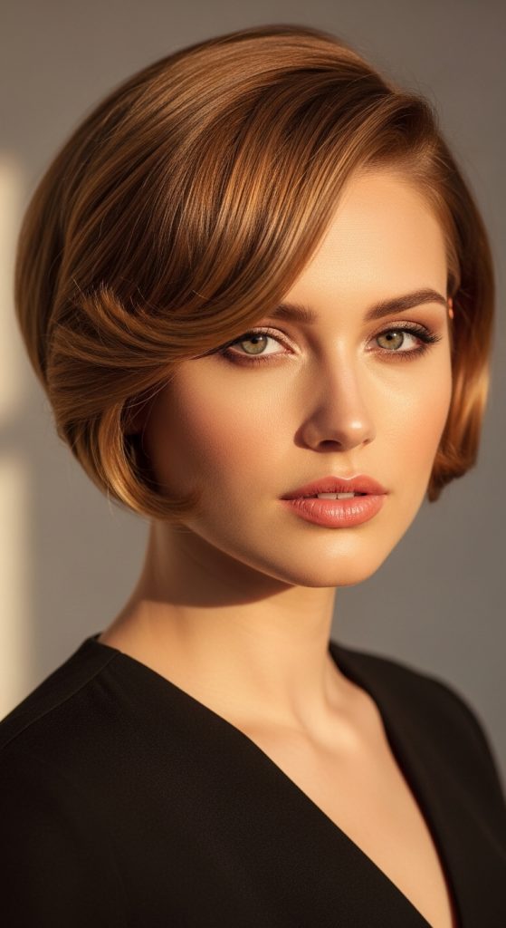 The classic short bob is one of the most recognizable short haircut styles because it creates a clean and balanced silhouette around the face. This haircut typically falls between the jawline and the chin. The defining characteristic of the bob is its straight perimeter line, which creates a structured appearance. This shape frames the face evenly and emphasizes natural facial features. The classic bob often appears in Pinterest inspiration collections because it reflects modern minimalist style while remaining versatile for everyday wear. It works well with straight or slightly wavy hair and can be adapted with subtle layering for additional texture.