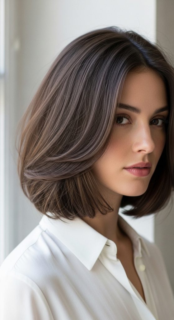 Pinterest inspiration frequently highlights the classic layered bob because it offers a timeless aesthetic suitable for many occasions. The hairstyle frames the face naturally and works well with both straight and slightly wavy hair textures. The layers help prevent the hair from appearing too heavy around the jawline, which keeps the overall appearance light and balanced.
