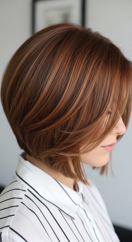 Another reason this haircut appears frequently in Pinterest inspiration boards is its adaptability to different hair textures. Straight hair highlights the clean structure of the bob shape, while wavy or slightly curly hair emphasizes the layered movement. Because the haircut can be styled in several ways, it works well for individuals who prefer variety without changing their haircut length.