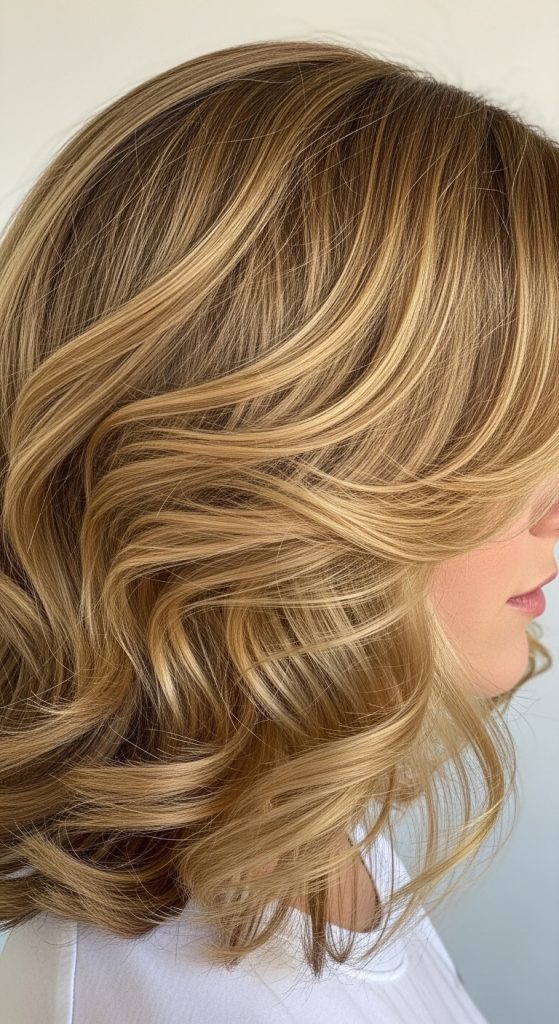 The wavy layered bob enhances natural wave patterns while maintaining the bob shape. The layers encourage waves to form without creating excessive volume.