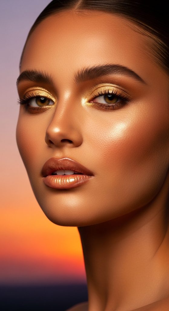 This look mimics natural vacation skin — warm, bronzed, and glowing.