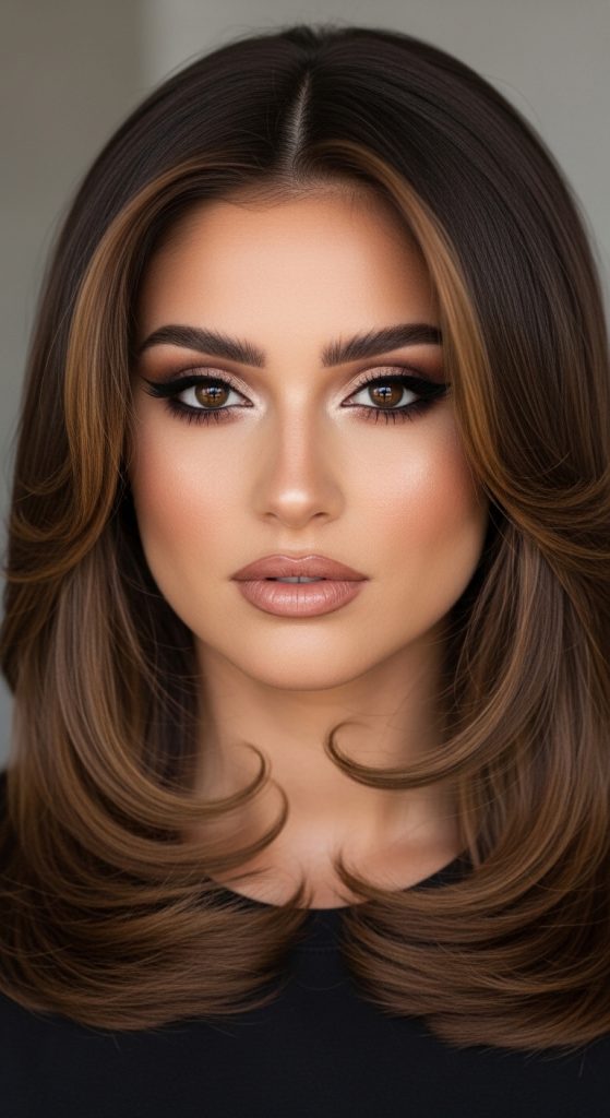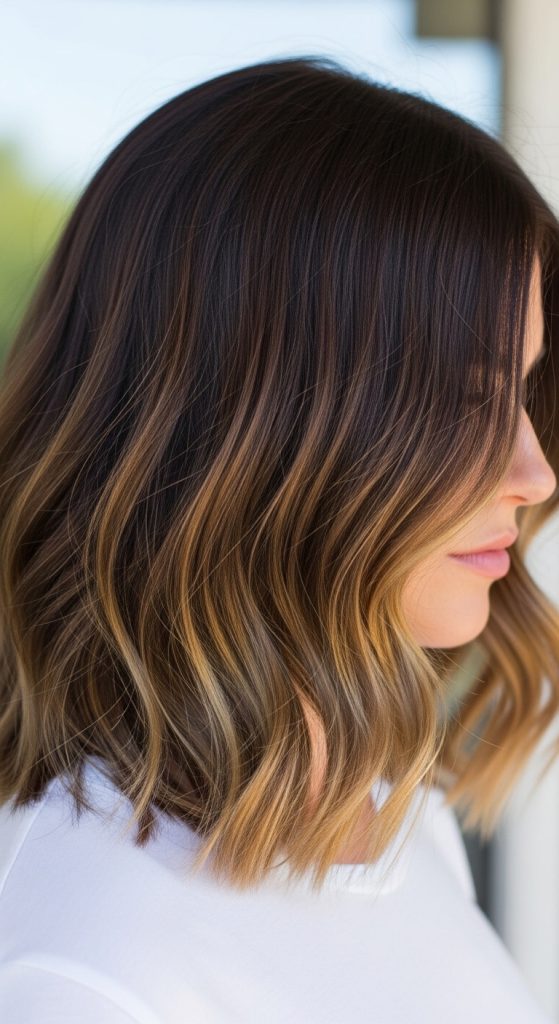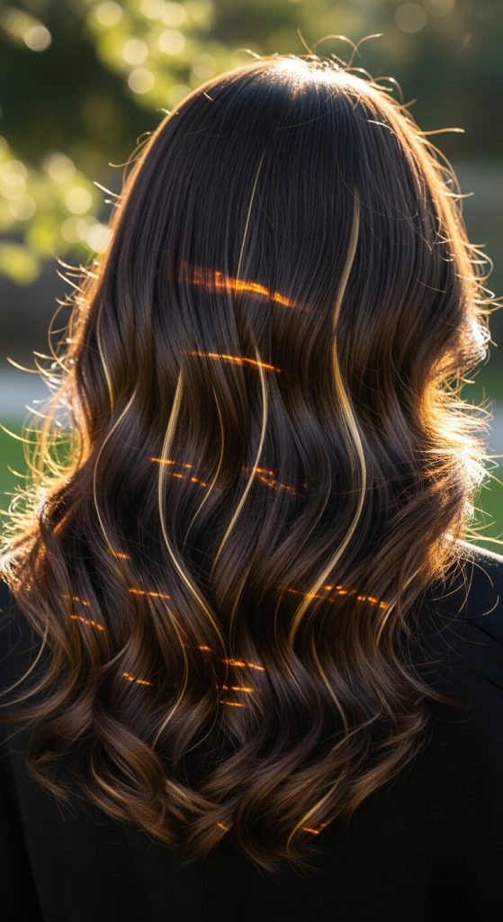 This look works especially well on medium to long layered hair because the lighter pieces catch movement. It’s also low-maintenance since balayage grows out softly without harsh lines.